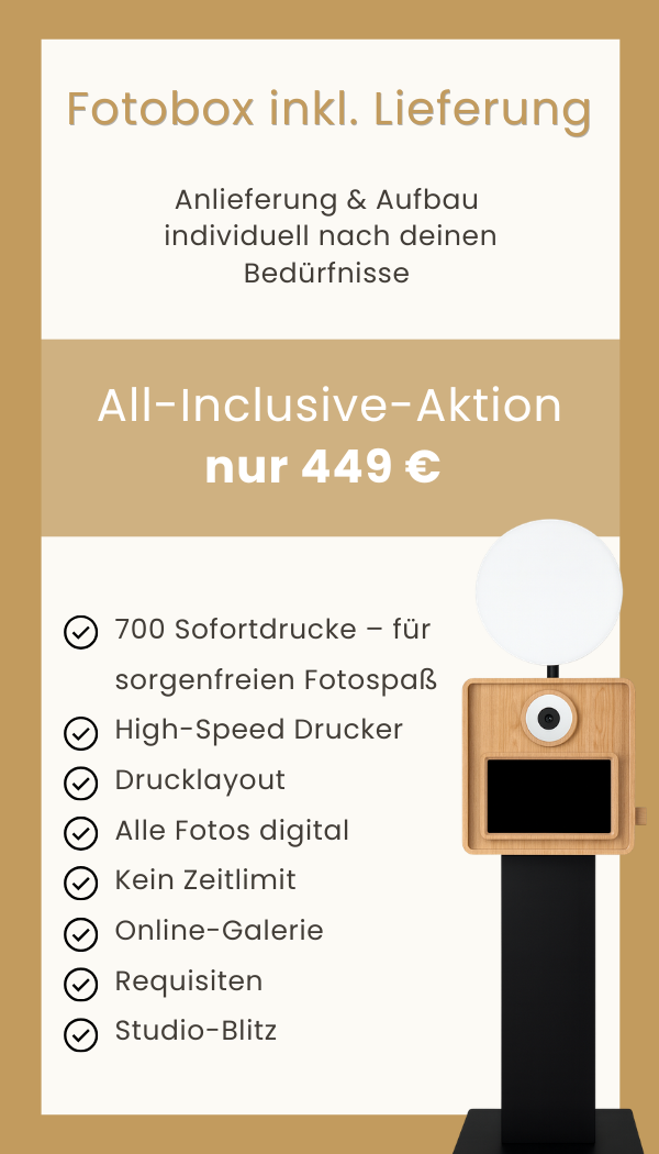 Nutze die Fotobox den ganzen Tag und die ganze Nacht – ohne Aufpreis. - Lieferung & Abholung